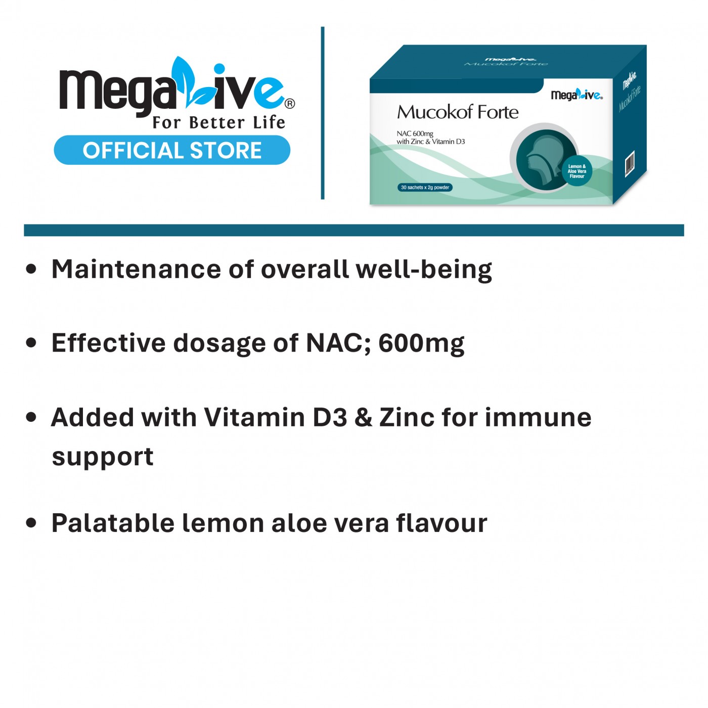 MegaLive Mucokof NAC 600mg Powder Overview